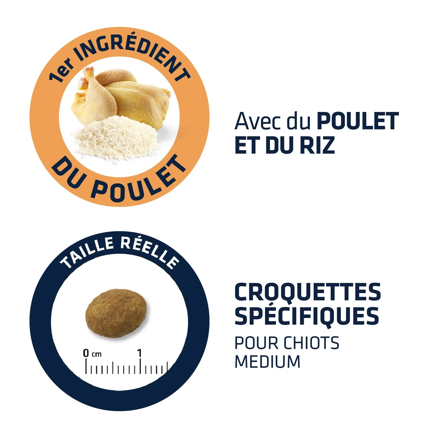 Les croquettes Advance Medium Puppy Protect sont formulĂ©es tout spĂ©cialement pour les chiots de 2 Ă 12 mois de race moyenne (de 10 Ă 30 kg Ă l’âge adulte), et les femelles gestantes ou allaitantes. L’aliment Advance Medium Puppy Protect contient :