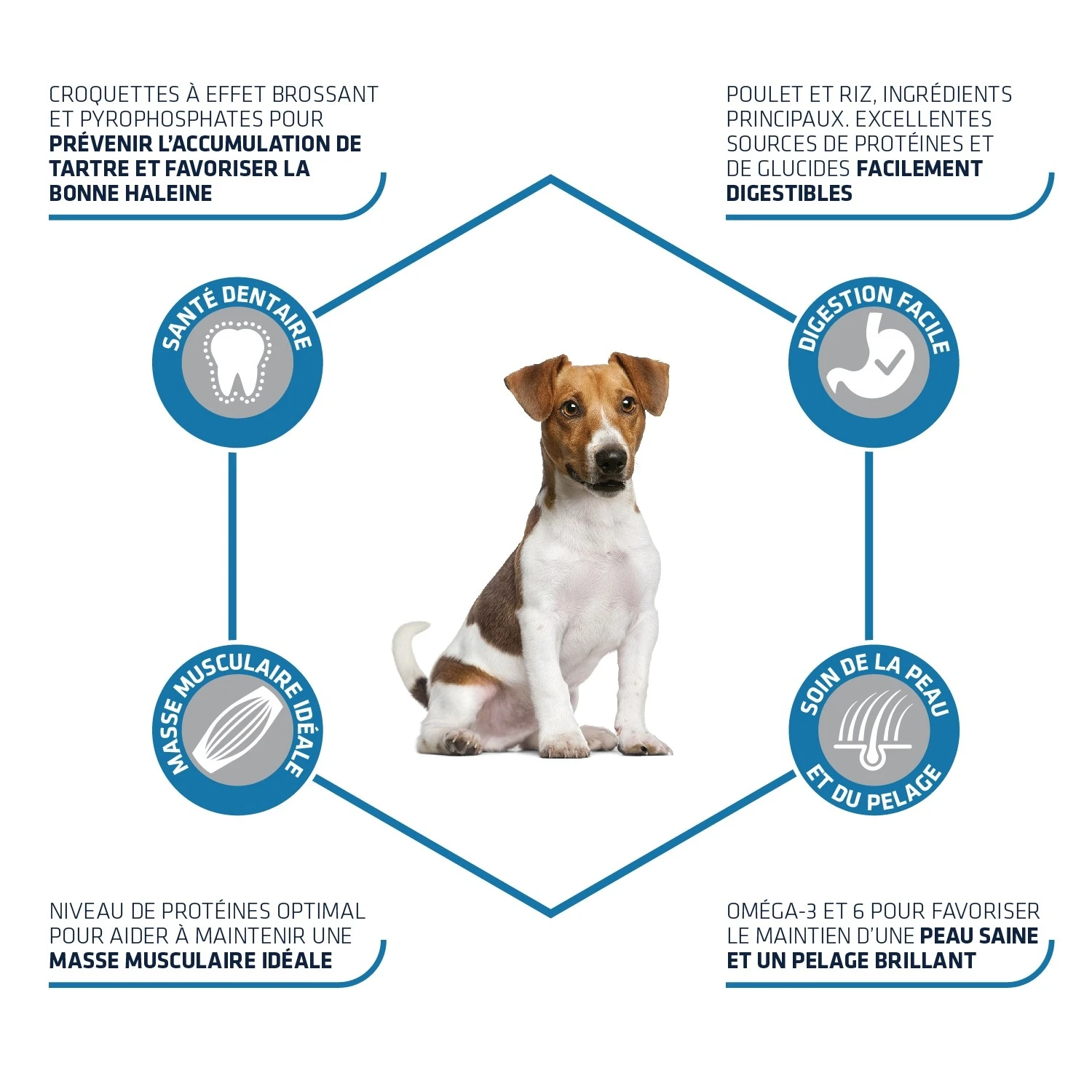 Les croquettes Advance Mini Adult sont de petite taille, adaptées aux mâchoires et à la dentition des chiens de petite race. De plus, elles contiennent des pyrophosphates qui sont des minéraux contribuant à prévenir la formation de tartre.