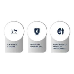 - teneur réduite en phosphore: limite l’hyperphosphatémie et freine la progression l’atteinte rénale.