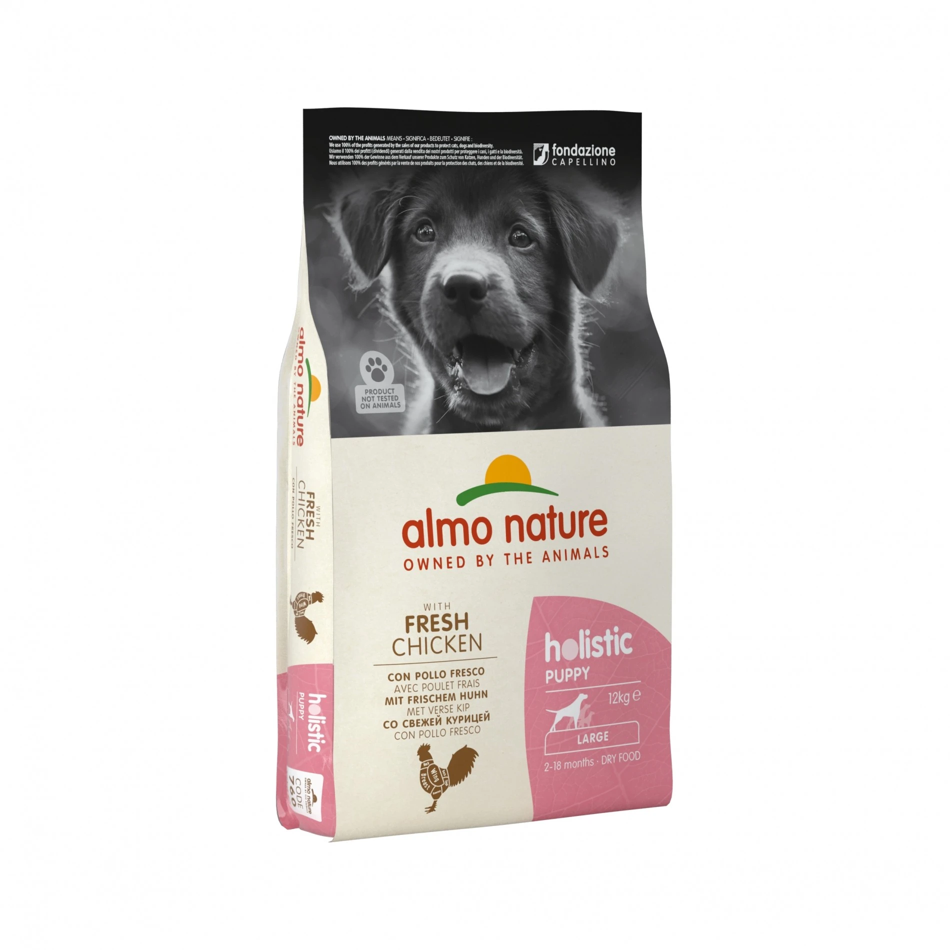 L’aliment Almo Nature Holistic Large Puppy est un aliment parfaitement adaptĂ© aux chiots de grande taille du sevrage Ă 18 mois et aux femelles gestantes et allaitantes. Les croquettes Almo Nature Holistic Large Puppy sont :