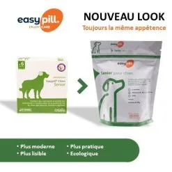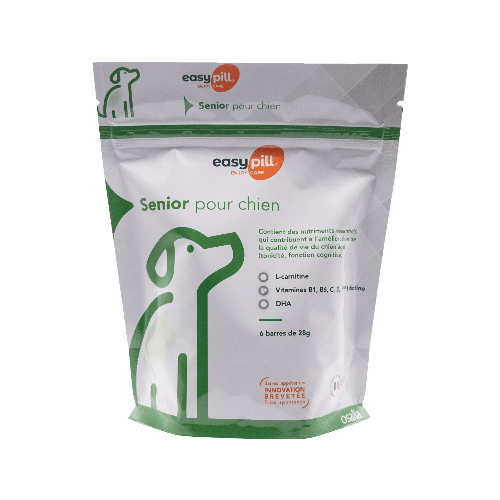 Riche en vitamines, L-carnitine et DHA, Easypill Chien Senior contribue Ă amĂ©liorer la qualitĂ© de vie du chien âgĂ© (tonicitĂ©, fonction cognitive).Â