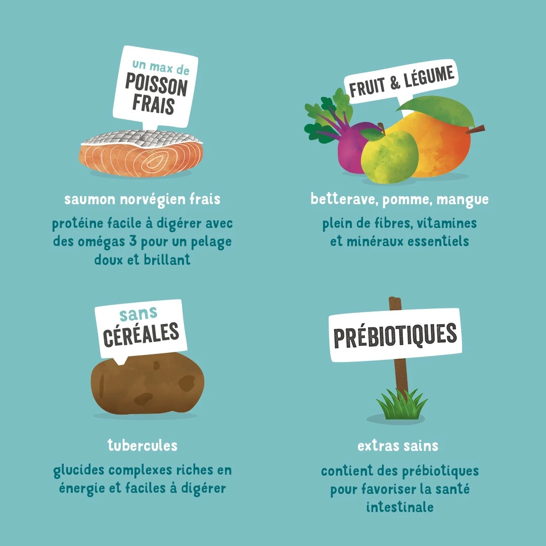 Pour le respect de l’environnement, les croquettes sont conditionnées dans un emballage 100% biodégradable et l’encre utilisée est à base d’eau.