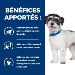Hill’s Prescription Diet Metabolic+Mobility Mini au Poulet est formulĂ© pour aider votre petit chien Ă perdre du poids et de manière durable tout en veillant Ă sa santĂ© articulaire. Les premiers rĂ©sultats sont visibles en seulement 21 jours.