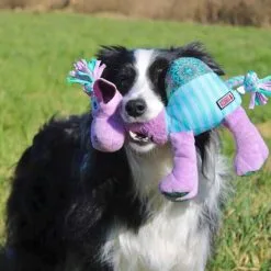 Douce et durable pour des moments câlins, elle saura aussi répondre à ses besoins de mastication et de jeu grâce à sa corde, ses textures variées et son couineur.
