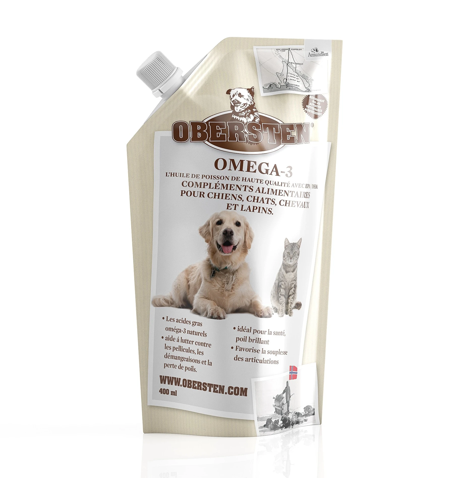 L’huile Omega-3 d’Obersten est une source naturelle d’acides gras omega-3 liquide (sous forme de triglycĂ©rides) pour vos chiens, chat et petits mammifères. Elle est très concentrĂ©e et contient de l’huile de plusieurs poissons : maquereau, hareng et anchois.