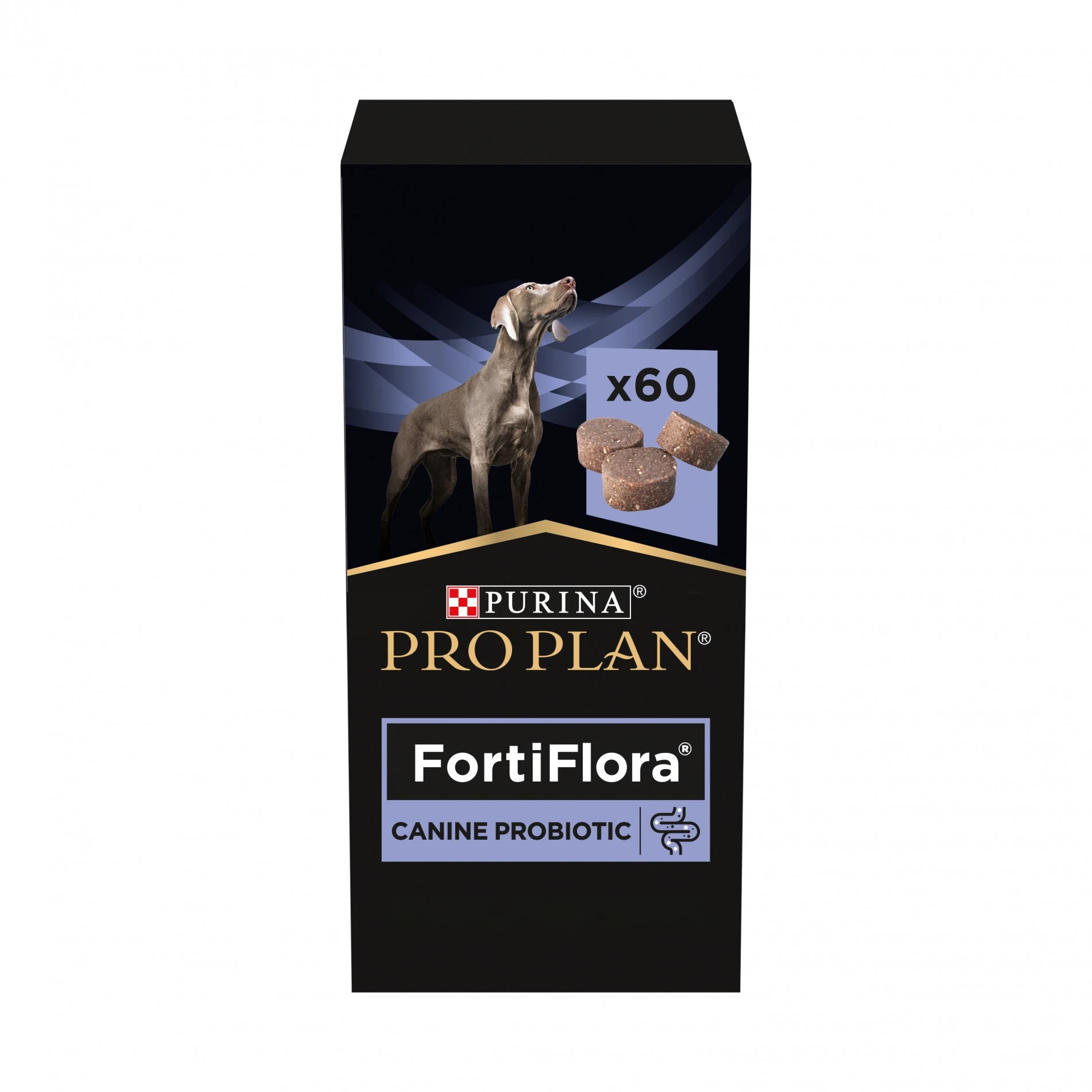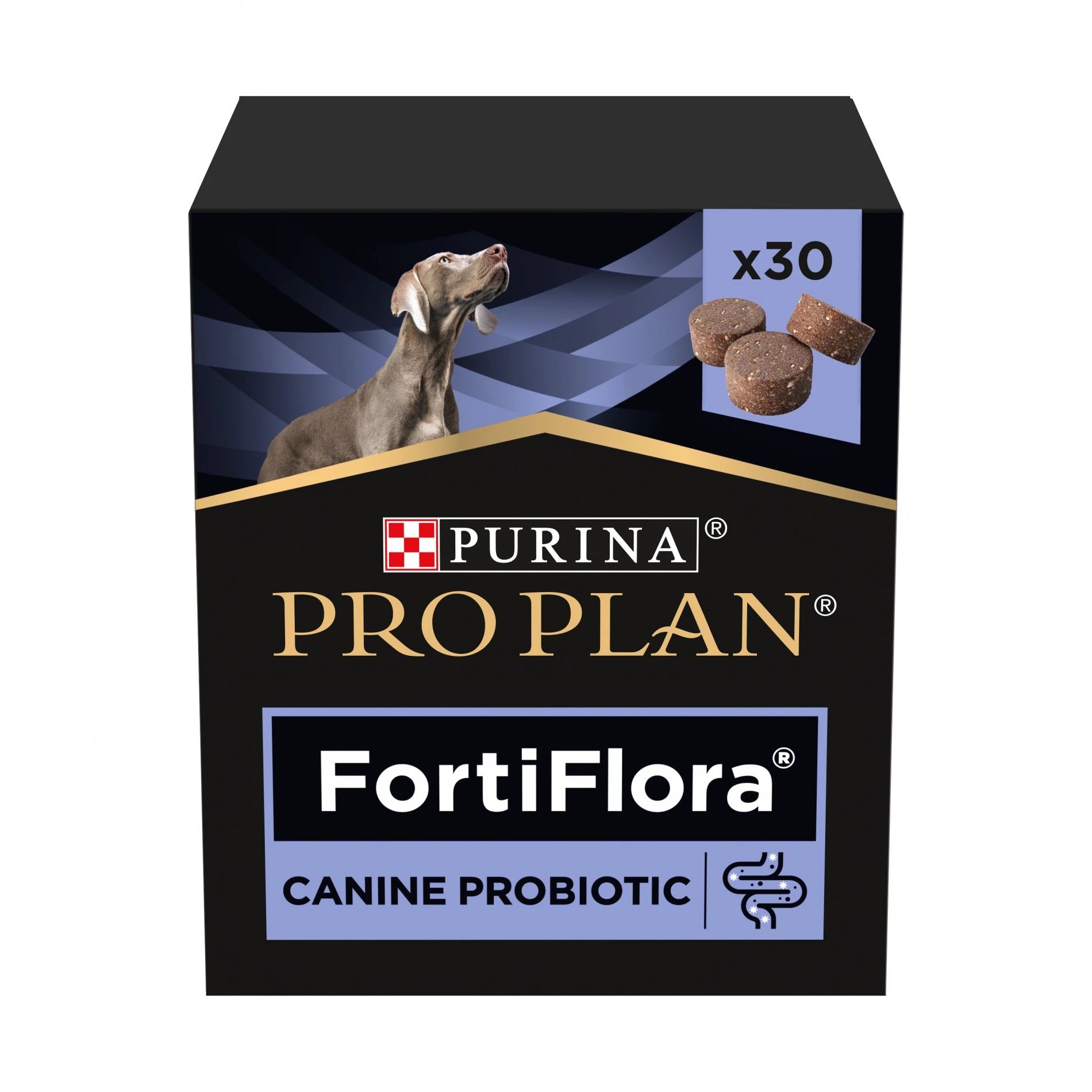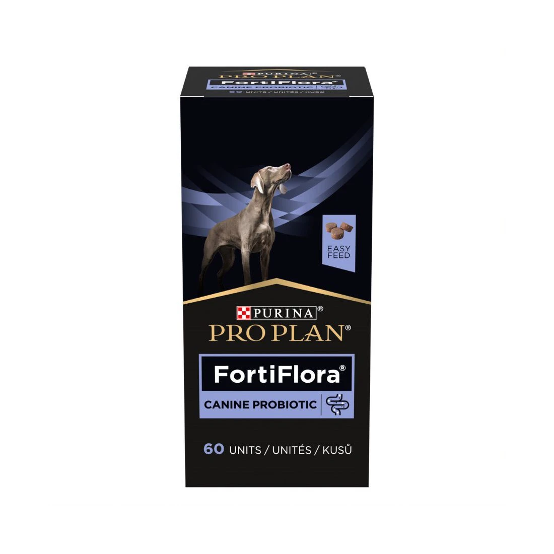 Pro Plan FortiFlora est un aliment complémentaire probiotique sous forme de délicieuses bouchées pour le chien de tout âge sujet aux troubles digestifs.