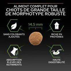 - Formulé pour les chiots de grande taille de morphotype robuste