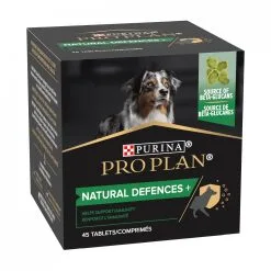 PRO PLAN® Natural Defenses+ est aliment complémentaire sous forme de comprimés scientifiquement élaboré pour soutenir le système immunitaire et aider à la production naturelle d’anticorps chez le chien adulte.