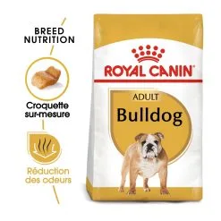 Les croquettes ROYAL CANIN® Bulldog Adult sont spĂ©cialement conçues pour rĂ©pondre aux besoins nutritionnels de votre Bulldog adulte, âgĂ© de plus d’un an.Â